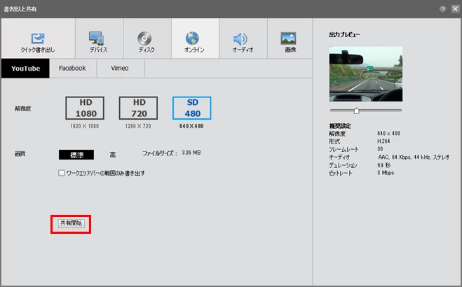 ◆YouTube、Facebook、Vimeoに書き出す場合
