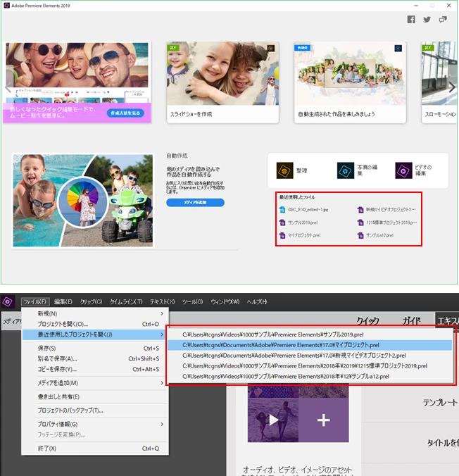 Premiere Elements2019で最近使用したファイルの削除及びエレメンツオーガナイザー内のフォルダの削除方法