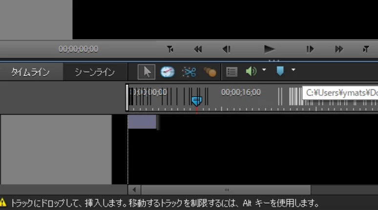 タイムラインからシーンラインに切り換えると、タイムラインにあった跡は消えますが、またカーソルを合わせると跡が残ります。