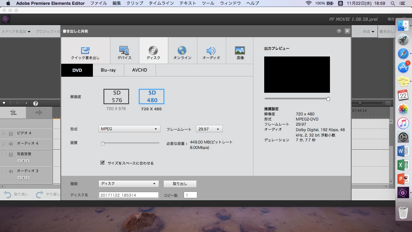 Premiere erements 15 DVD書き出しについて