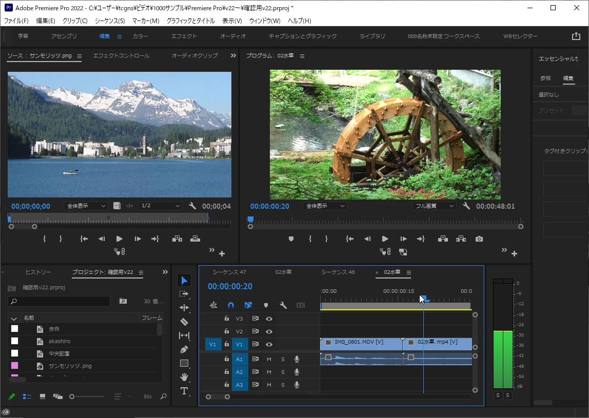 >「プロジェクトのアセット」パネルで、ソース一個一個を都度アクティブ状態にする事で同様の操作が出来る、という事ですかね?