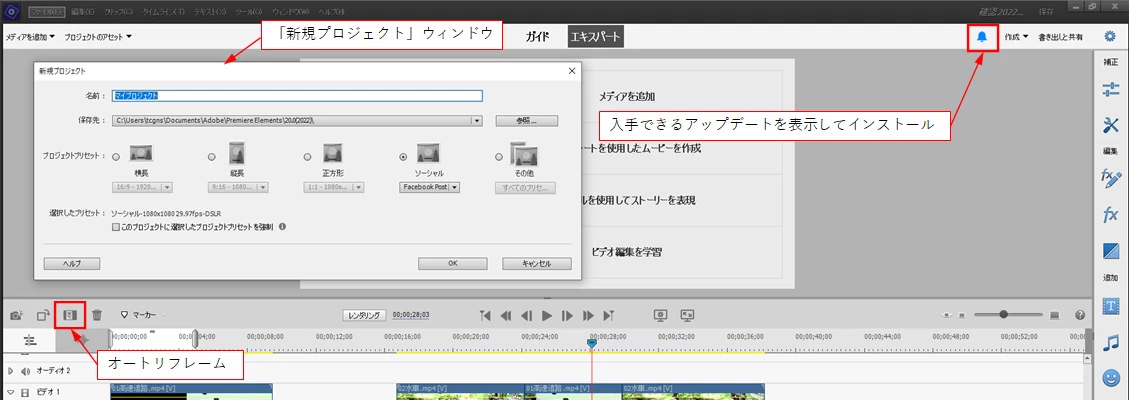 PremiereElements 2022のGUIに関して