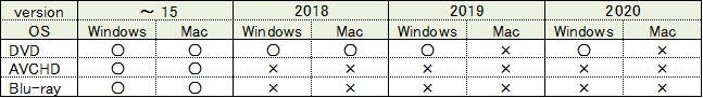 Premiere Elements 2020では、Windows版はDVDのみ対応しています。Mac版はディスク対応なしです。