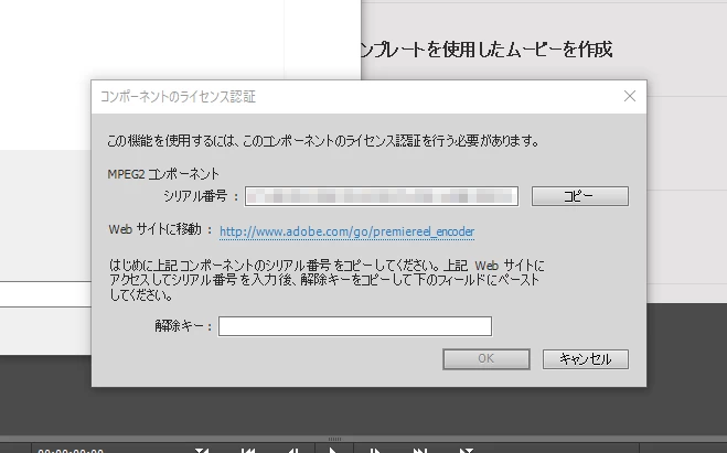 Premire Elements 14 MPEG2 コンポーネント 解除キーが取得できません。