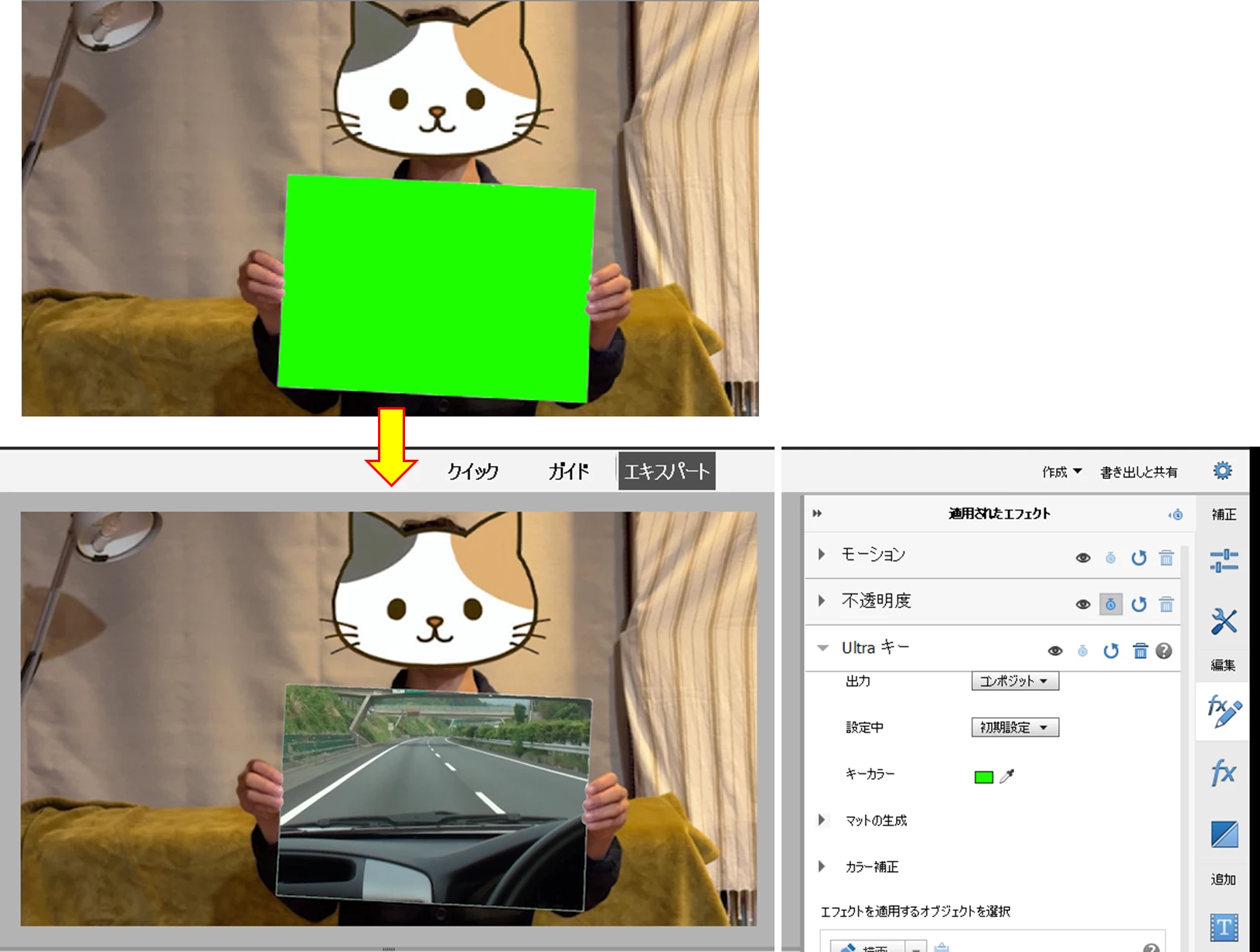 Ultraキー使用時にクリップがモノトーンになるという現象が出ております。