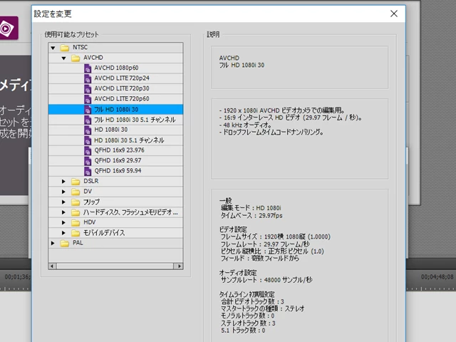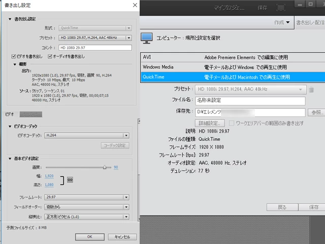 windows10 Elements13 QT HD1080i書き出し