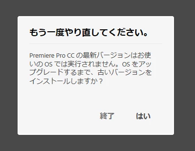 お使いのOSでは最新バージョンのPremiere Pro CCを使えない