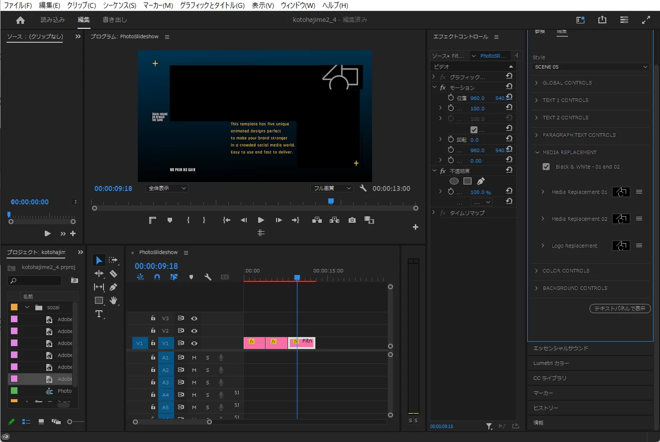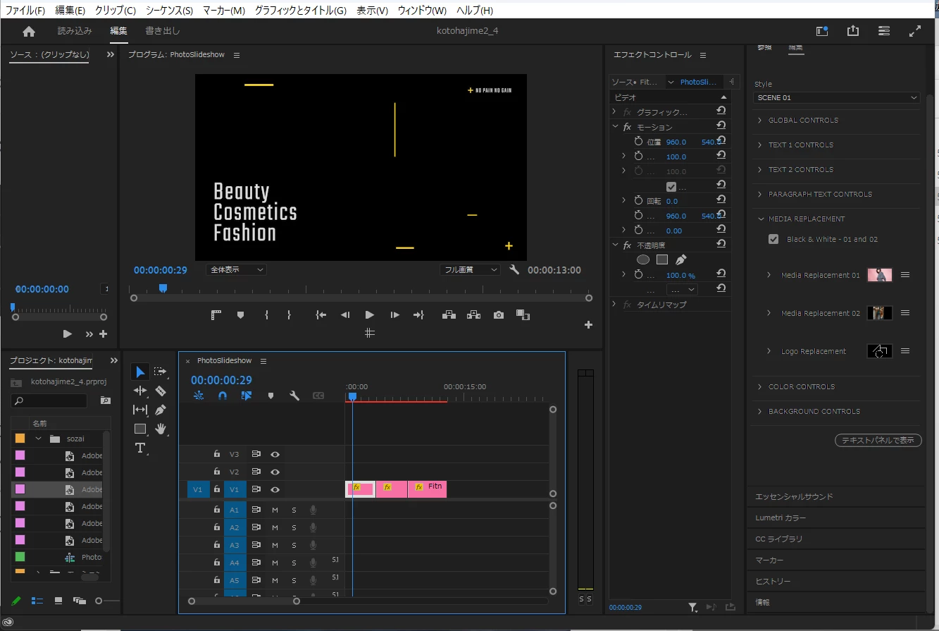 「ことはじめドリル>チュートリアル記事・初級>Premiere Proでおしゃれな写真スライドショーを簡単に作る方法」で画像が表示されません。