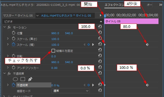 スケールの幅でキーフレームを打ってみたのですが、