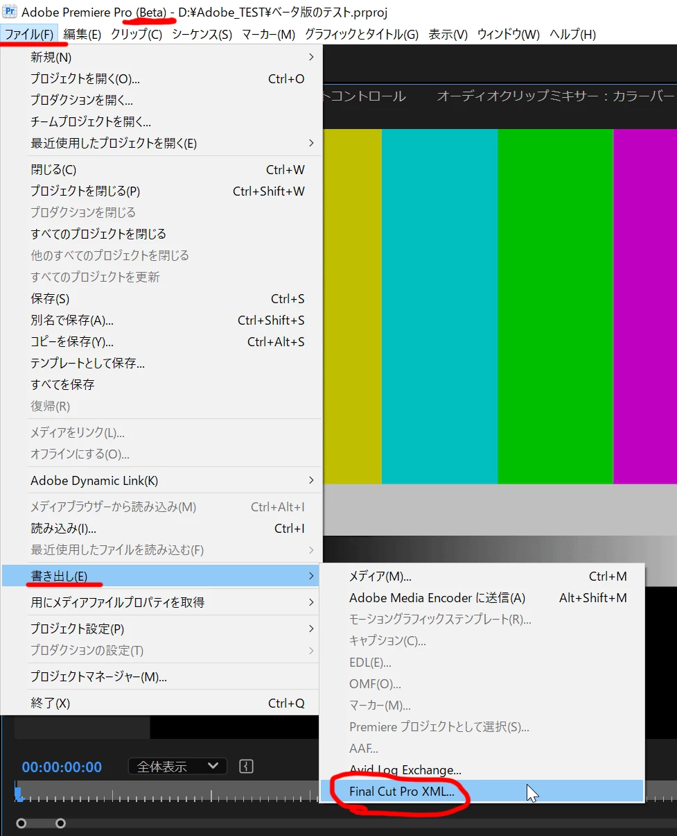 とこのとですので、今一度余裕のあるタイミングでベータ版をインストールしてからベータ版にて「ファイル」メニューの「書き出し」からFinalCut XMLを書き出して頂き、正式リリース版の「ファイル」メニューの「読み込み」から読み込んでいただくのが、一応標準的なやり方になると思います。