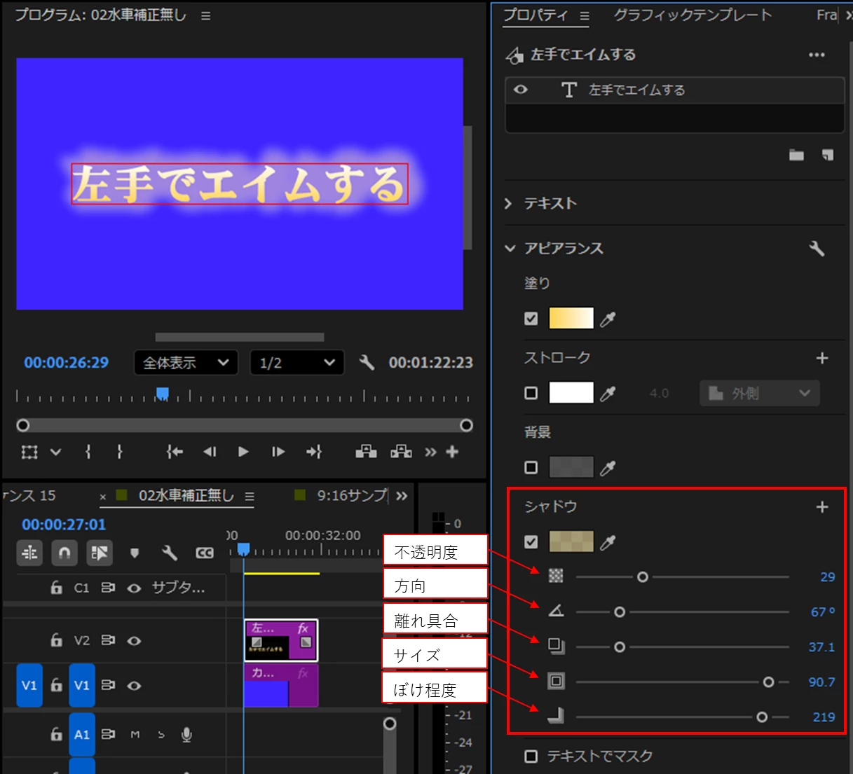 こちらの動画のテロップは斜めにシャドウでしょうか?