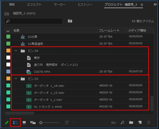 各素材が入ってるビンは、普通ダブルクリックするとプロジェクトパネル内で分けられますがそれが出来ないフォルダがあります。