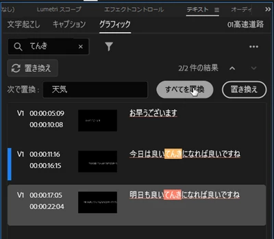 検索欄に入力すると、「置き換え」が表示されます。