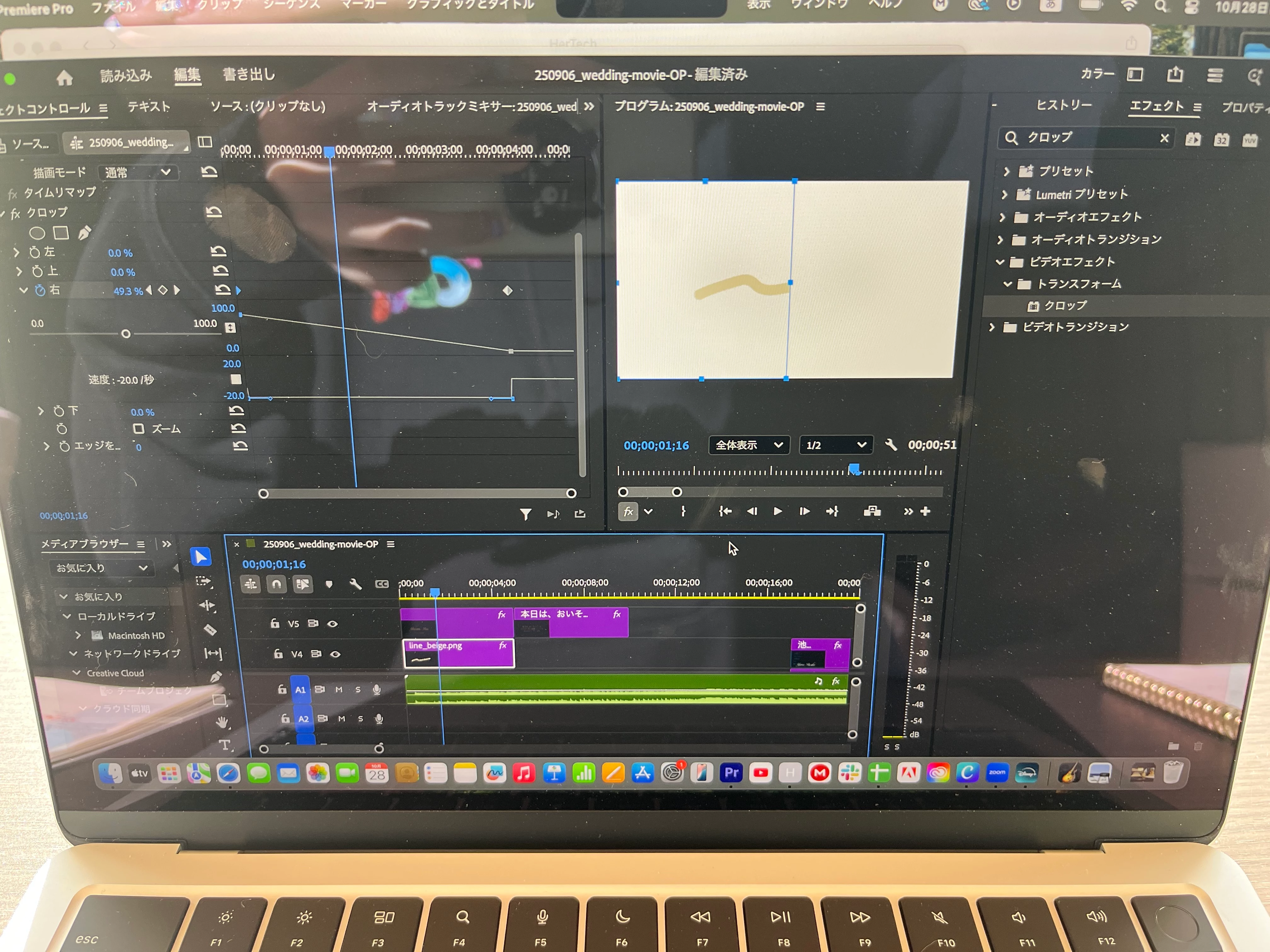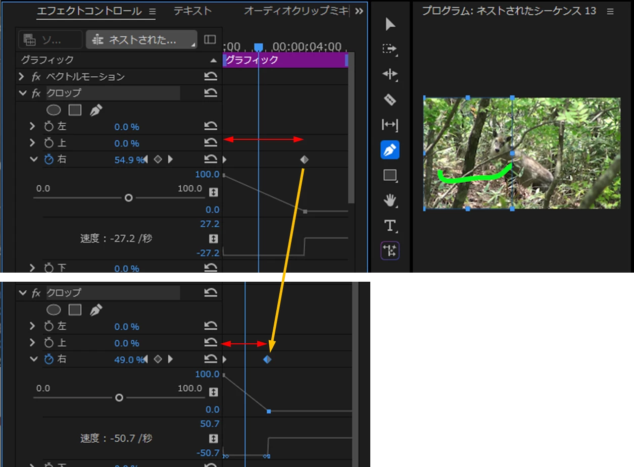 クロップエフェクトをかけて線を伸ばそうとしたのですね。
