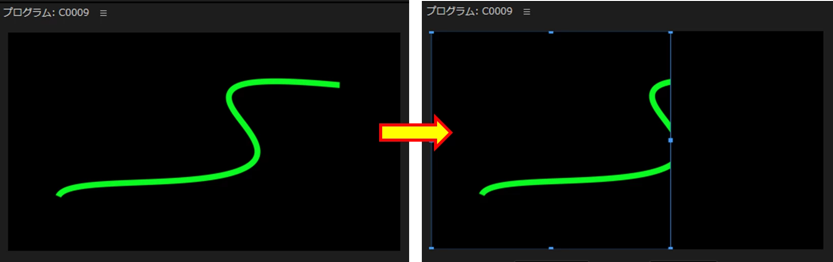 ご提示の線はほぼ直線的でしたので「クロップ」エフェクトであまり違和感なく伸ばすことができますが、下左図のように曲がりくねっている場合は、「クロップ」エフェクトでは下右図のようになり、違和感があります。