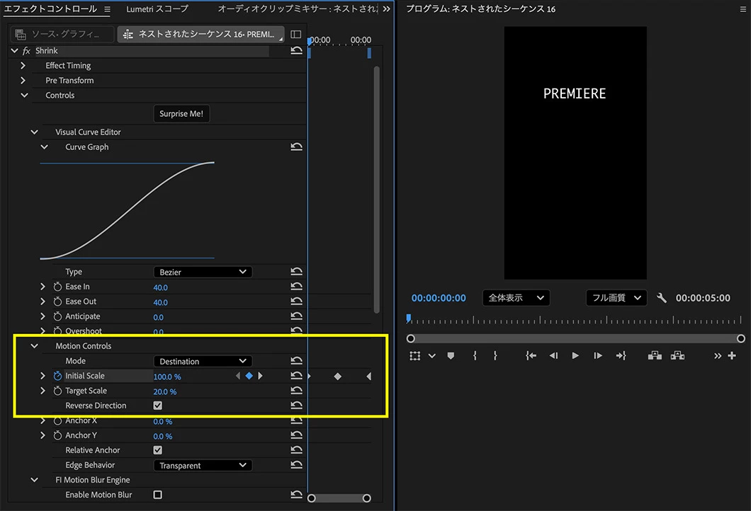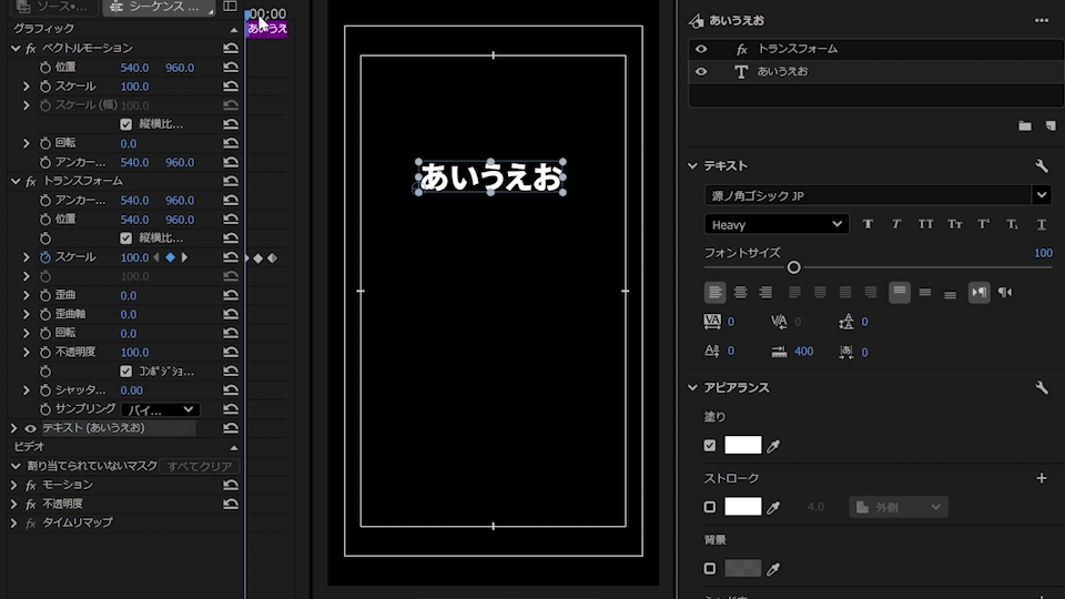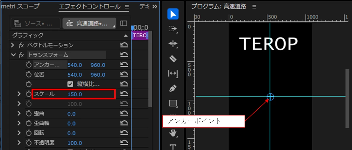 プリセットを使って拡大縮小するテロップを作りたいです。中心から大きくなったり小さくなったりするはずなのですが、中心から上方向に拡大縮小してしまいます。