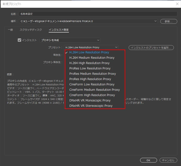 私は4k、6kの素材を組み合わせて編集する作業があるため、プロキシ作成の上作業をしたいのですが、プロキシ作成の際のインジェスト設定での解像度と、シーケンス設定での解像度は同じにすべきでしょうか?