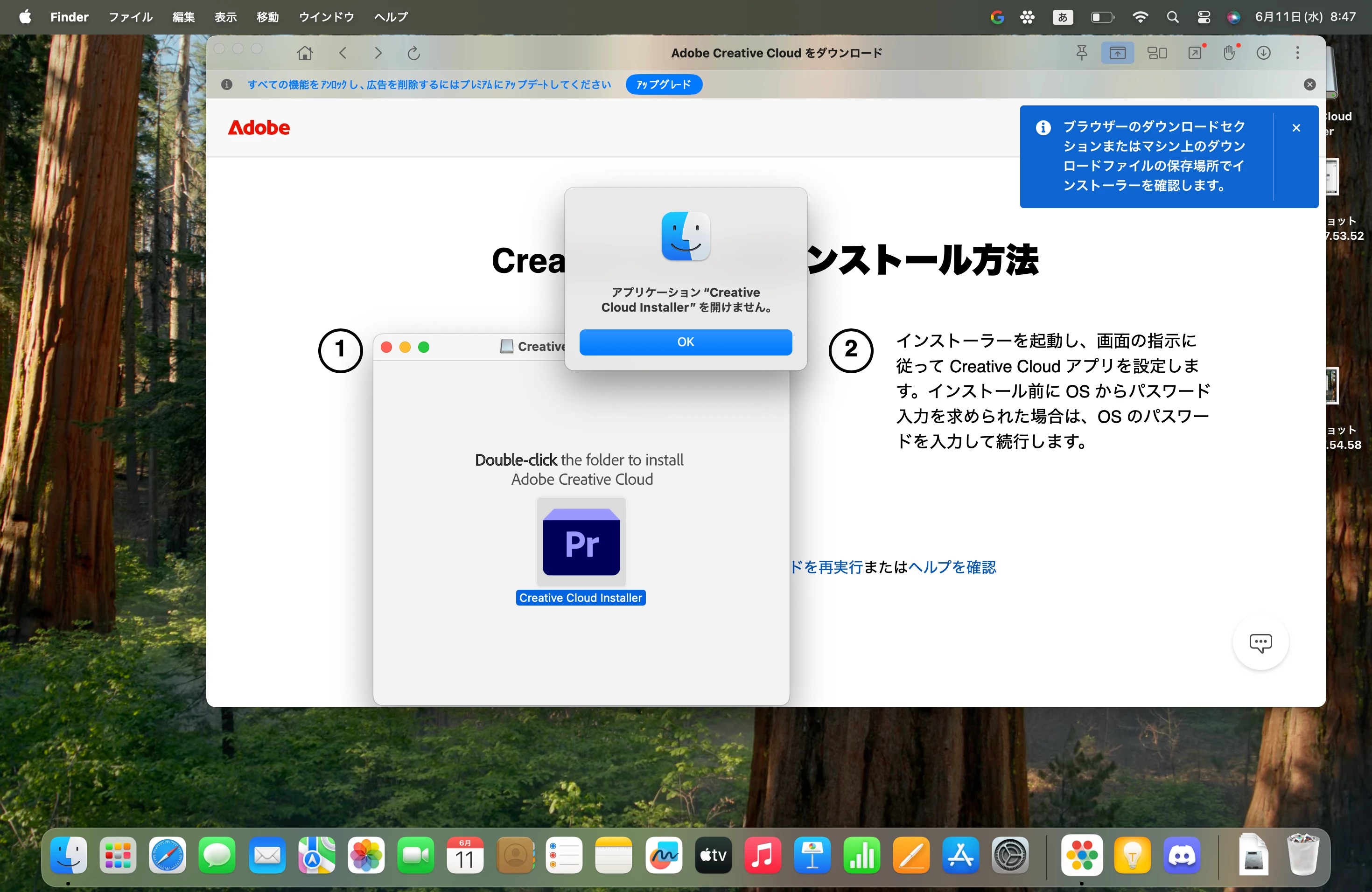 MCへpremiumproをダウンロードし、インストールしようとすると添付のようなエラーが出て