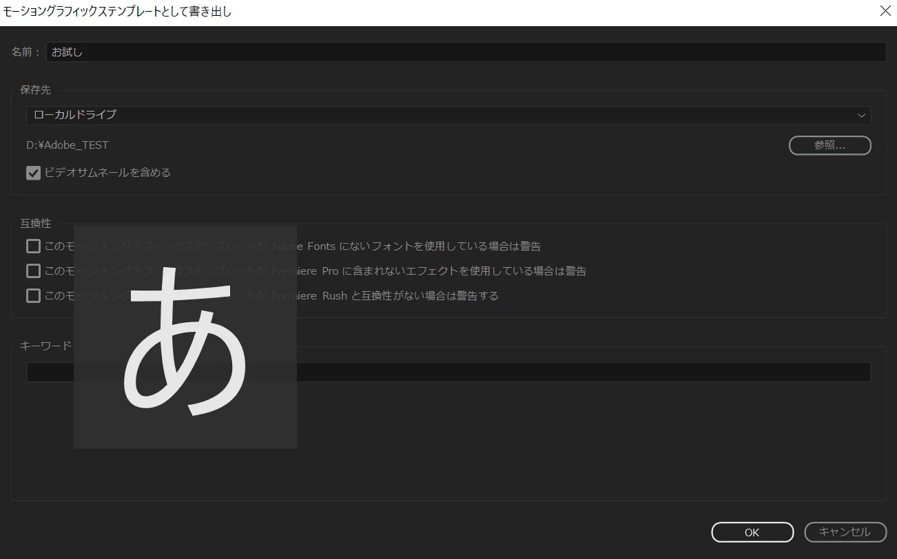 なぜこれを訪ねるかと言いますと、一度デスクトップにそのモーショングラフィックステンプレートで保存したテンプレートをデスクトップに置きたいからです。