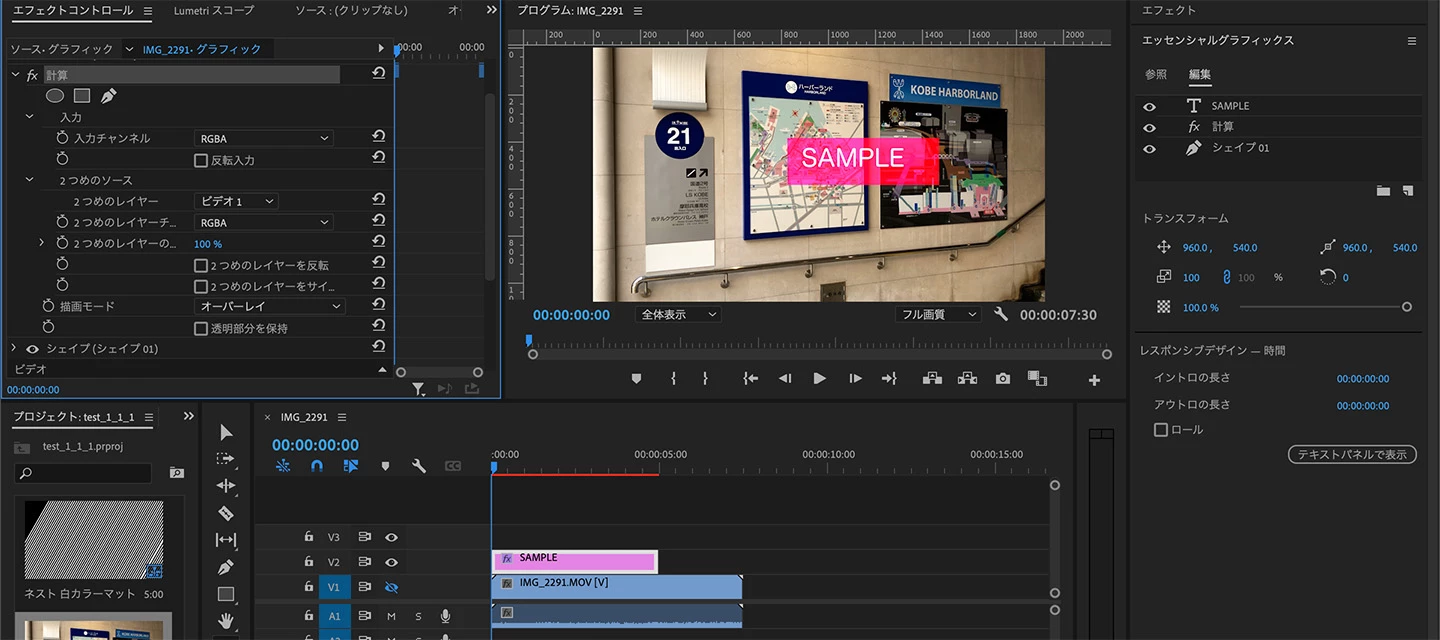 エフェクト「計算」をテキストとシェイプの間に配置して、下図のように設定すればできると思います。