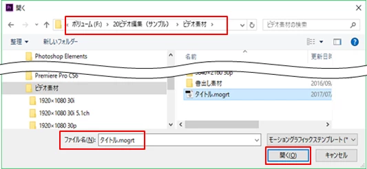 ②開いた「開く」ウィンドウで、フォルダーとファイルを指定し、「開く」をクリックします。