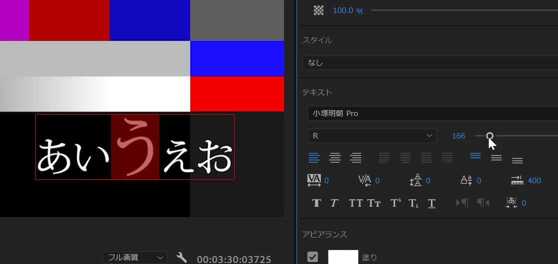 エッセンシャルグラフィックスで1文字ずつ大きさを変えるには?