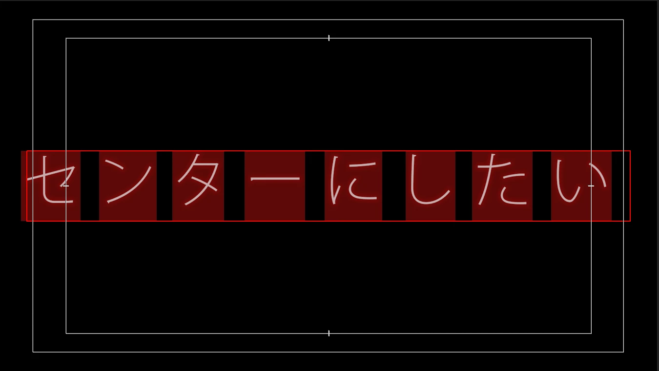 テキストにある赤い枠(バウンディングボックス?)を基準にセンターになっているようでして、赤い枠内のテキスト右と下に微妙に空白があることで、テキストがセンターに来ません..!