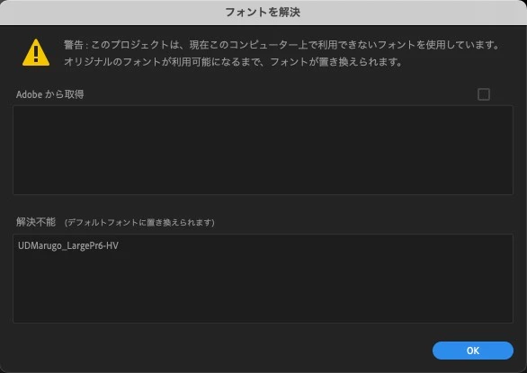 購入したフォントをプレミアプロで読みこみをして、使おうとすと写真のようにエラーが発生してしまいます。