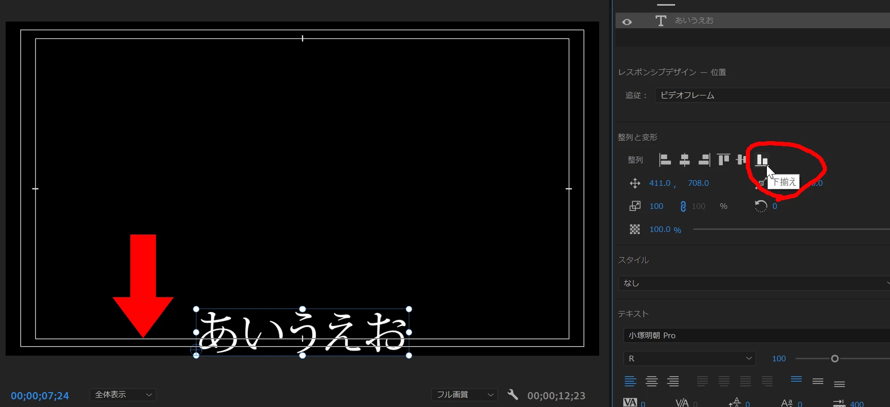 「整列と変形」→「下揃え」「上揃え」アイコンを押すと、毎回画面いっぱいのギリギリまできてしまいます。