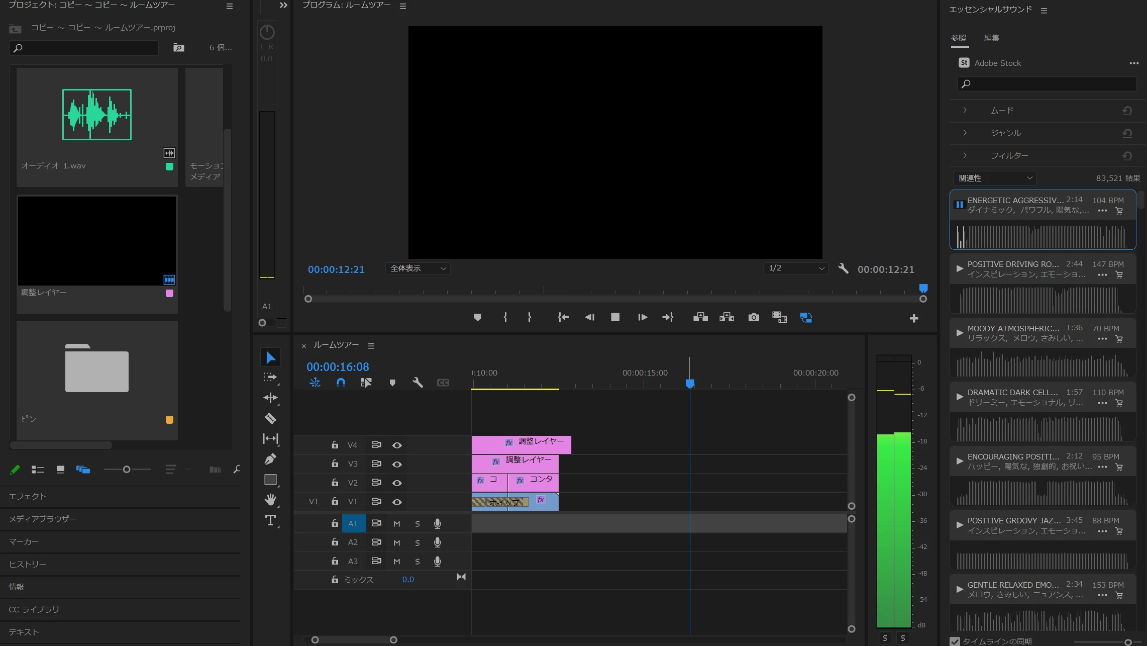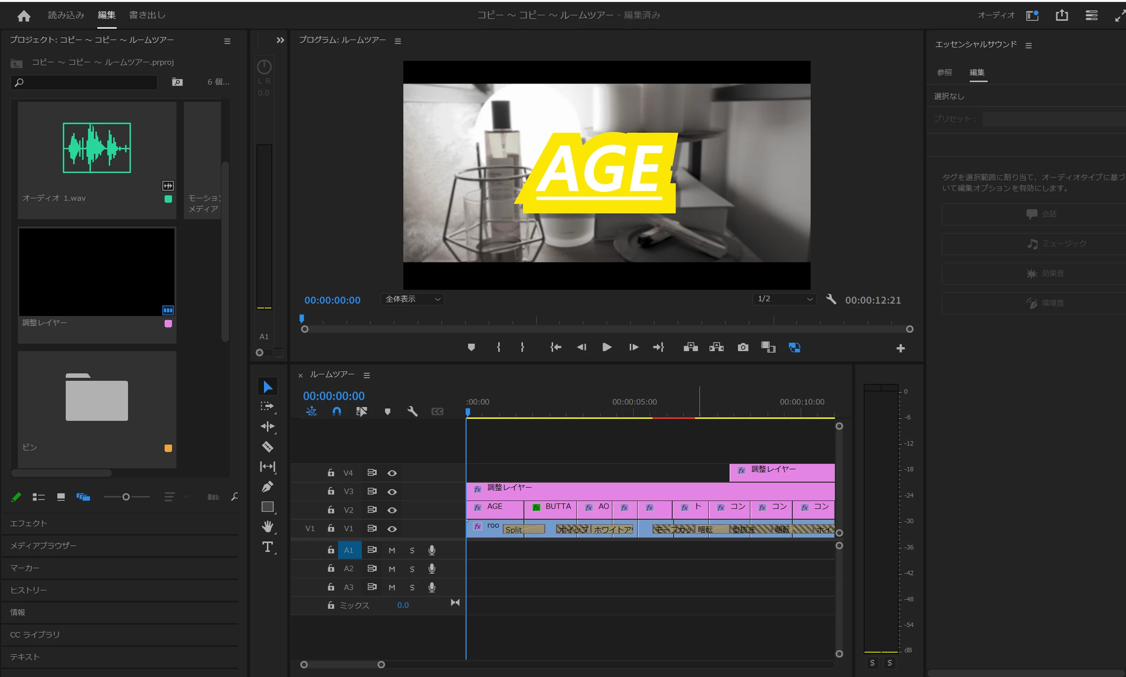 ・参照画面のエッセンシャルサウンドからオーディオをタイムラインに