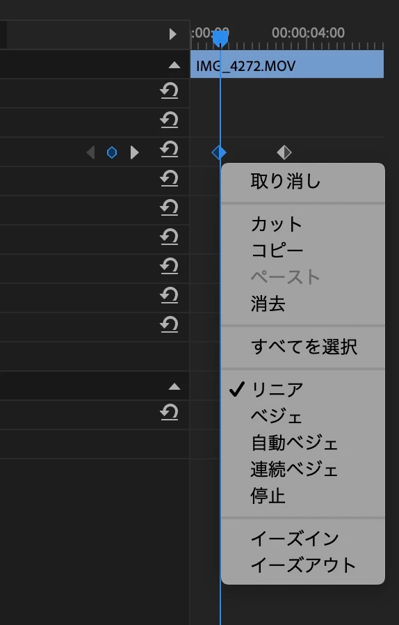 最初のキーフレームで100、2番目のキーフレームに150にして拡大をしようとしており、実際、再生すると、数値はちゃんと100から150に向かって動いていますが、プログラムモニターの画像は何も変化しません。厳密に言うと、最初のキーフレームから1フレームだけ進めると、いきなり150の画像になり、そのままずっと画像に変化がないまま、ただ、数値だけはちゃんと動いているという症状です。ちなみに、他のモーション「位置」や「回転」は問題なく同じやり方で動きます。