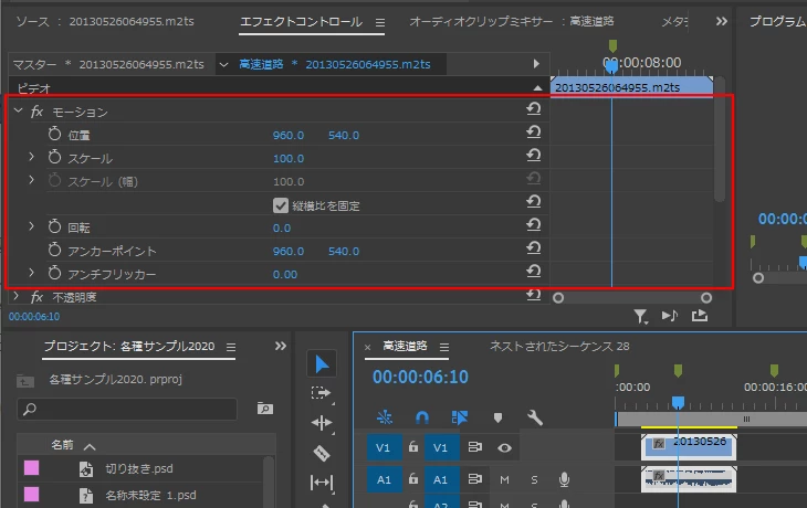 Premiere Proを勉強中です。テキストをアニメーション化させたいのですが、タイムライン上の素材をクリップしてもコントロールパネルに「位置」等の表示が見当たらなく、キーフレームを追加出来ません。