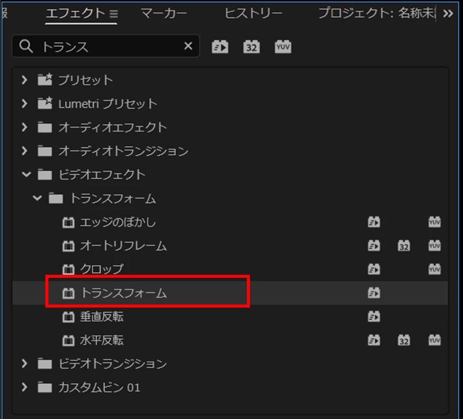 エフェクトコントロール内の「トランスフォーム」エフェクトを使ってアニメーションを作成しているのですが、参考にしているお手本動画には「シャッター角度」の項目が表示されているのに、私の環境ではその項目が表示されません。