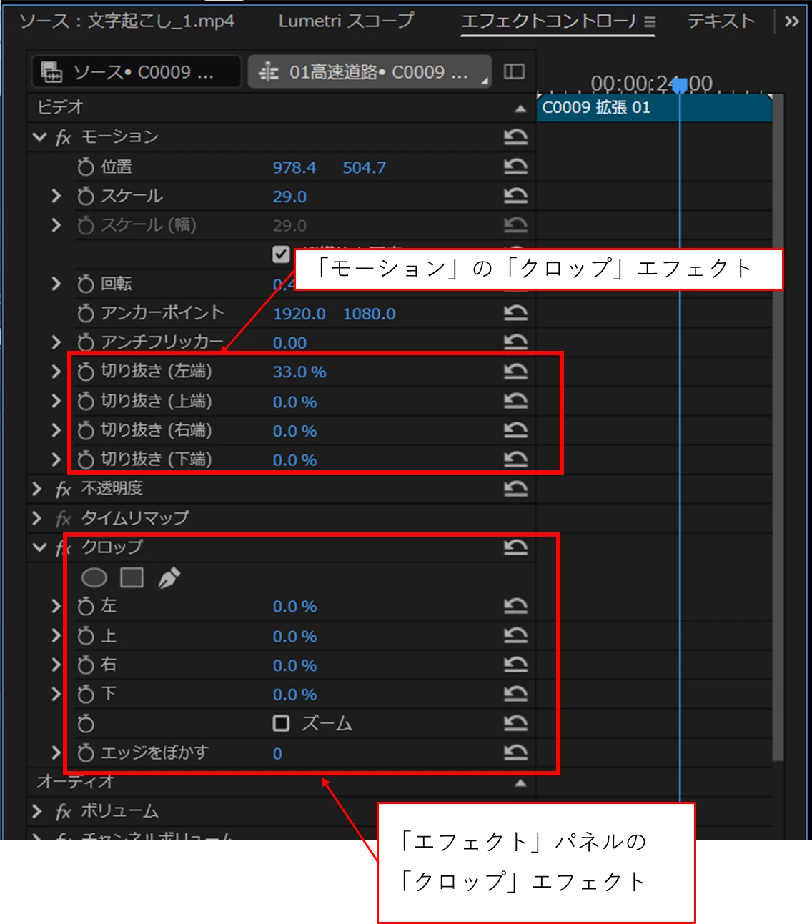 使用しているのは「トランスフォーム」エフェクトで、「モーション」プロパティではありません。