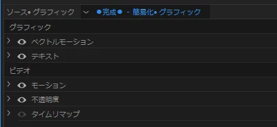 Premiere Proで、クリップを選択してもエフェクトコントロールパネルの左側に矢印が表示されません。不透明度とタイムリマップには左側に矢印がありますが、ベクトルモーションやシェイプ、テキストにはない状態です。