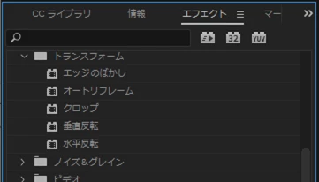 エフェクト、ビデオエフェクト、トランスフォーム、反転が消えてしまい困っております。