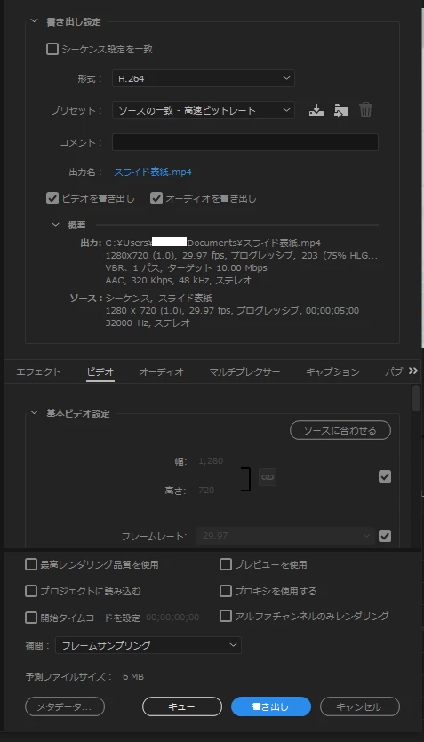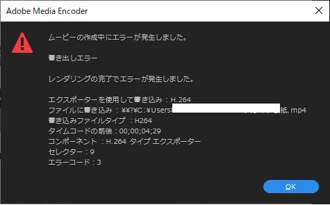 動画の書出しを行ったところ、以下の書出しエラーが発生してしまいました。