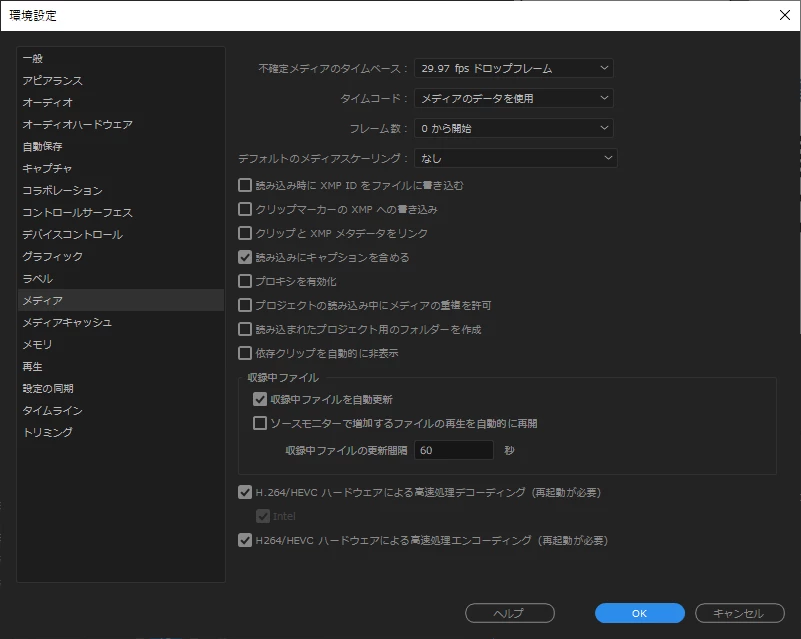 ・編集>環境設定>メディアから、高速デコーディング・エンコーディングのチェックを変更