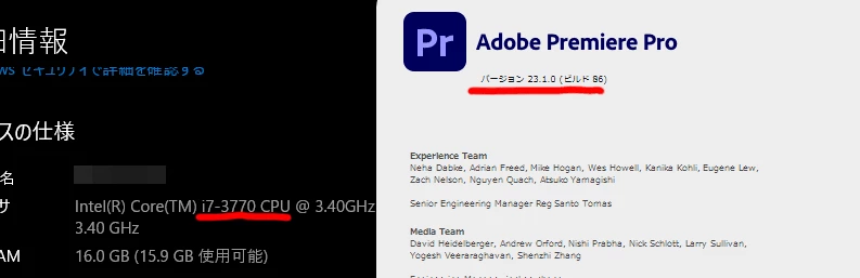 Premiere Proのシステム要件を満たしていない場合、エラー12175,113が出力されインストール出来ないでしょうか?