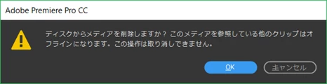 シーケンス上にて「オフラインにする」→メディアオプション「メディアファイルを削除する」