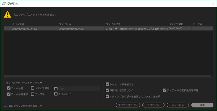 まず、premire pro cc2017で編集し保存しました。(mac os Sierra 10.12.6使用)その後、speed gradeでカラーグレージングをしようとしましたがリンクできなかったため、まずpremierのデータを保存後、speed gradeから保存したデータを立ち上げようとしましたがエラーが何回も出ました。その後、speed gradeでの作業は諦め、再びpremier を立ち上げたところ動画が勝手にオフラインになっていました。オフラインを何とかオンラインに治したいのですが、方法がわかりません。メディメディアをリンクで対処しようとしましたが、これも何回もエラーが出ます。もう台無しなんでしょうか。やばいです。