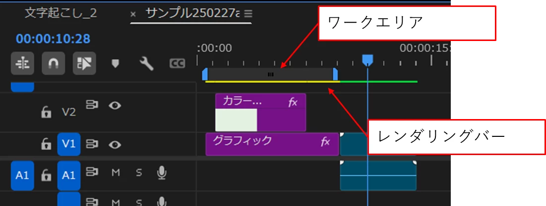 すでにレンダリング済みのところにテキストを入れますと、そこは「レンダリングされていない(プレビューファイルが無い)状態」になります。