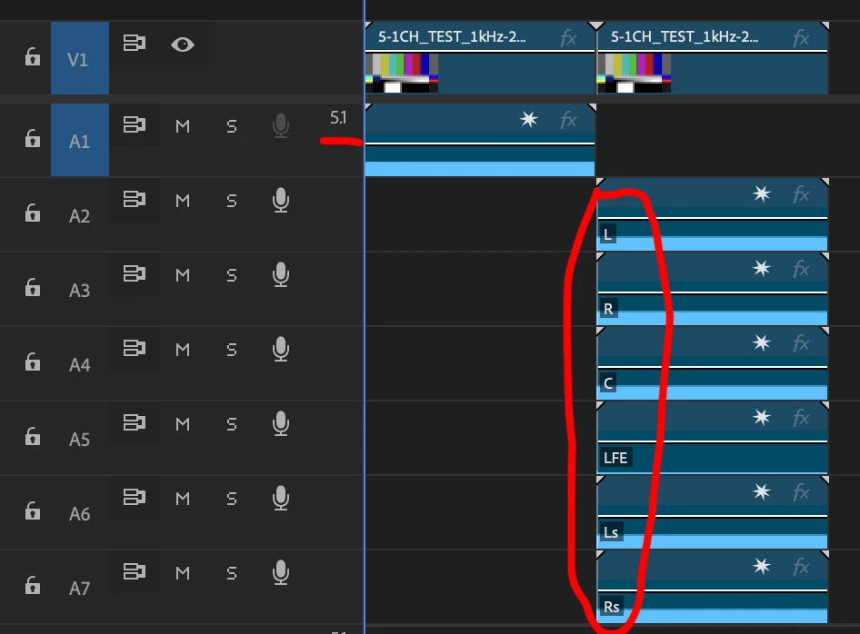 オーディオがL、R、C、、LFE、LS、RSの5チャンネルで取り込み表示されました。