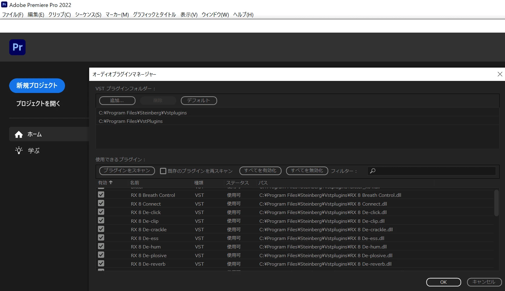 Premiere Pro 2022(win10)に更新後、オーディオプラグインマネージャーを開こうとするとフリーズする症状が発生しております。