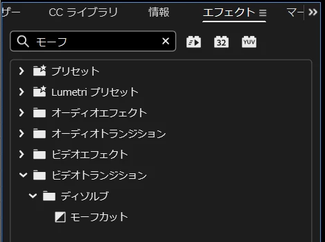 Premiere Pro でのモーフカットトランジションの適用
