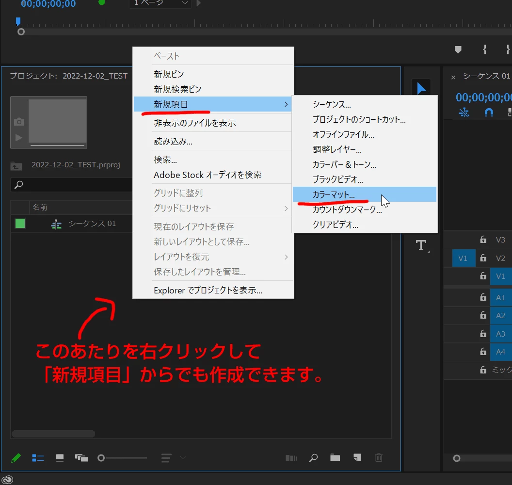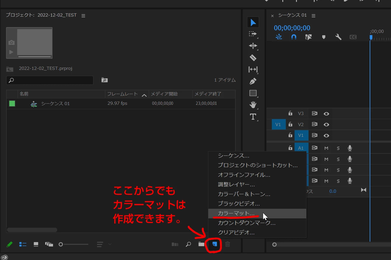 ファイル→新規→カラーマット→黒選ぶ→OK