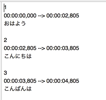 各キャプションの開始、終了時間とキャプション内容のテキストがエクセル表で渡されたのですが、