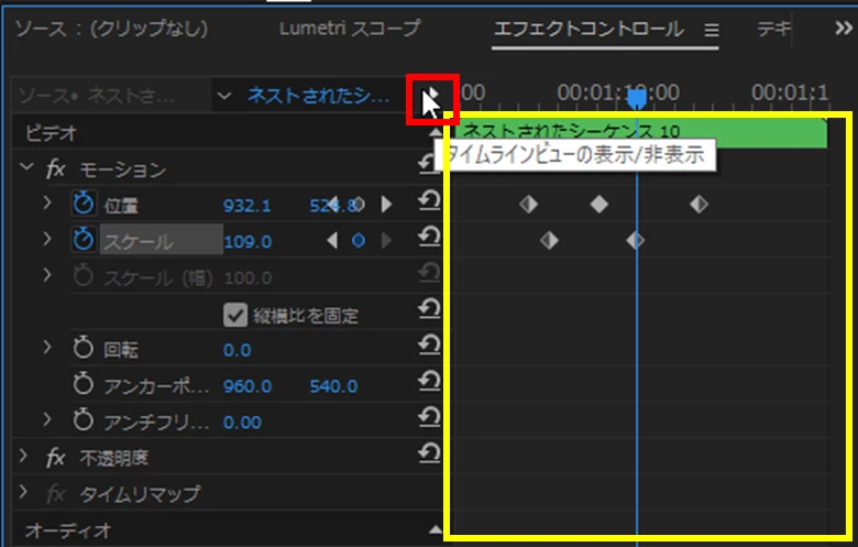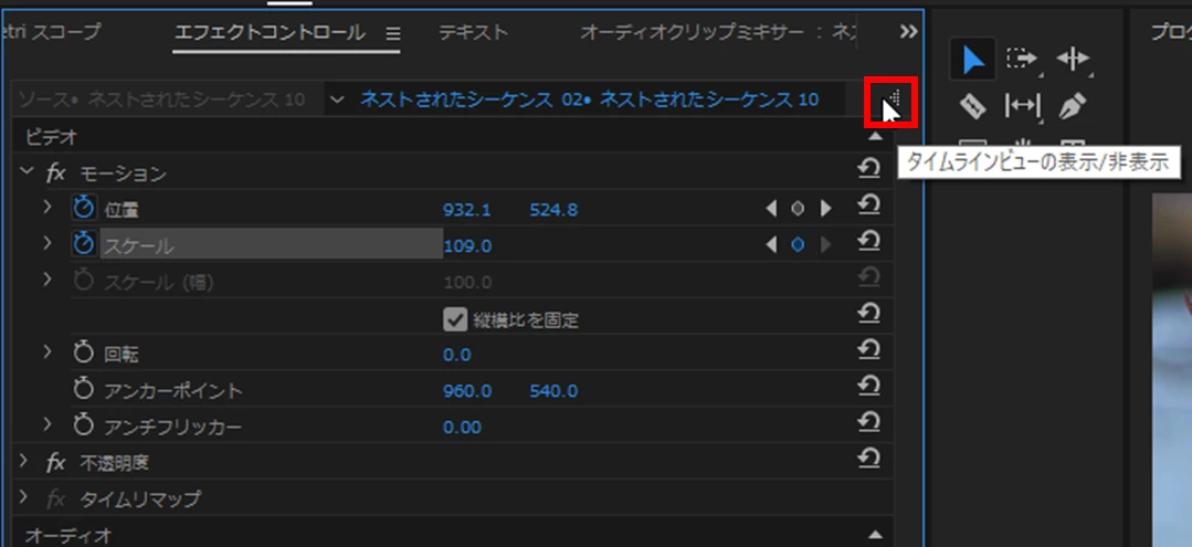 エフェクトコントロール画面上に添付の画面が出てきません。どうすれば出せますでしょうか?