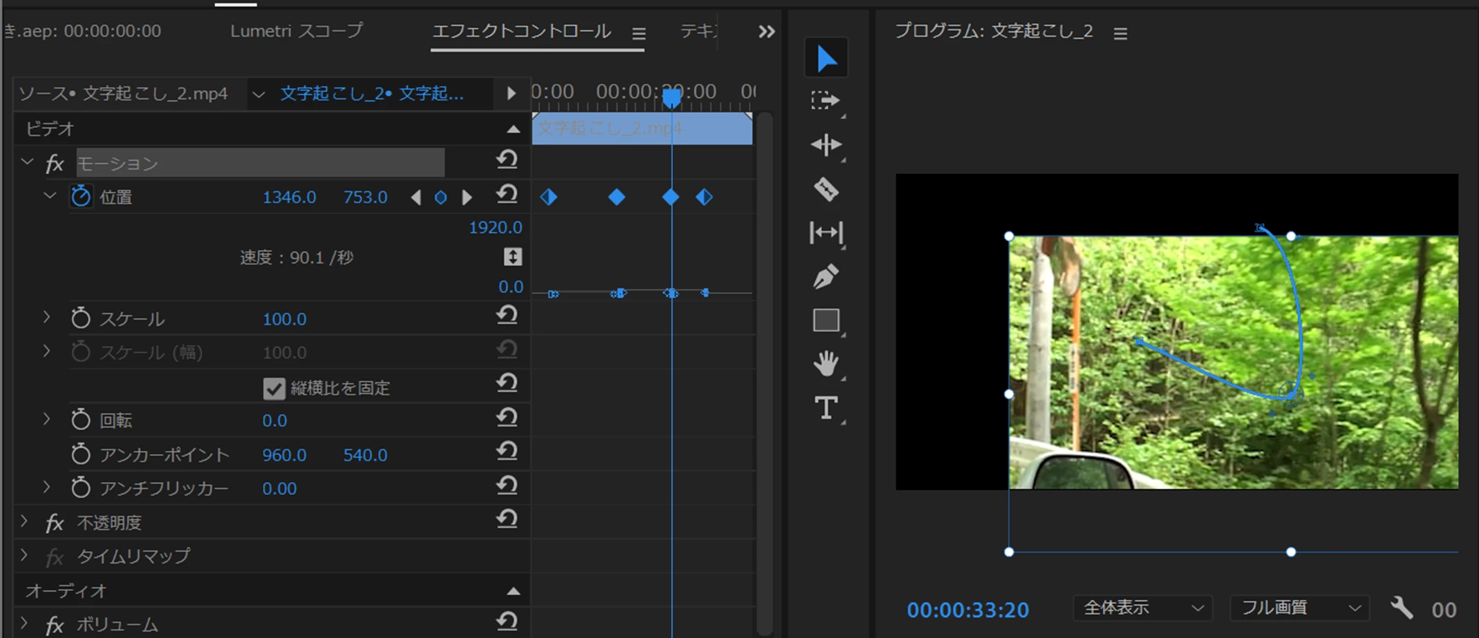 (属性のコピー&ペーストを行ったり、動きを付けた後にクリップの尺を短くしたときにありがちです。)