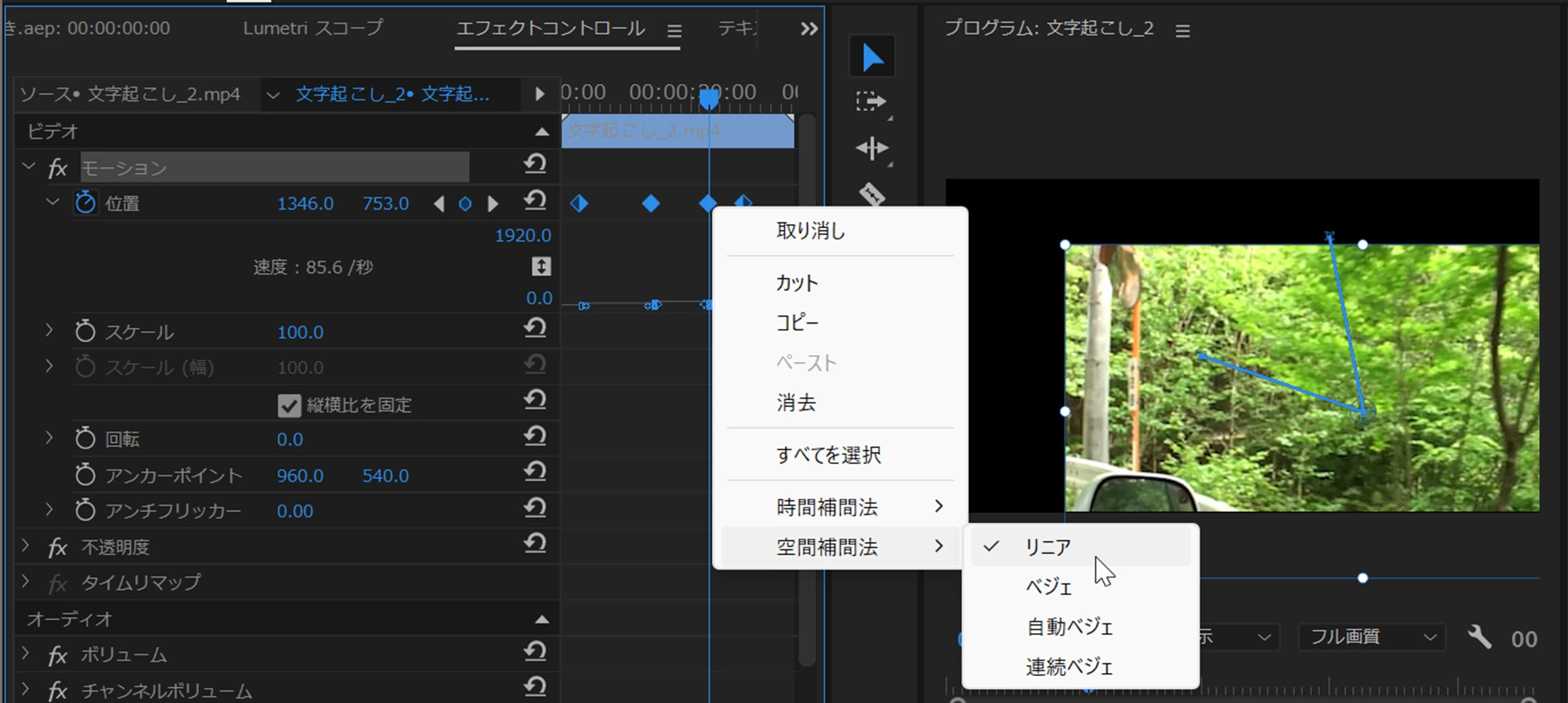 キーフレーム外で勝手に動く。設定した部分では動かない。